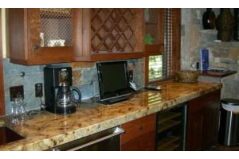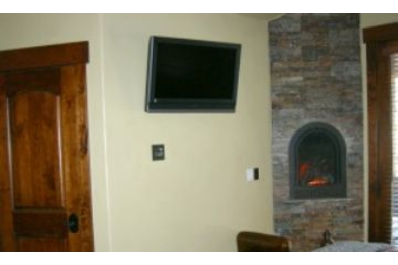 The kitchen is beautiful, with stainless steel appliances, nice countertops, and beautiful cabinetry. The master bedroom has an ornate king bed with unique bedding, a fireplace, and a wall mounted flat screen TV. The master bath has a corner bathtub and separate shower. This home boasts an excellent wet bar, washer and dryer, and three DVD players.Surrounding Description