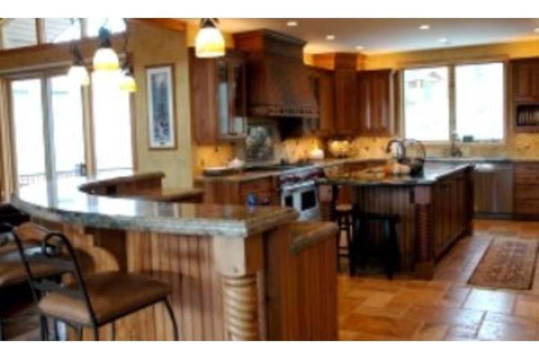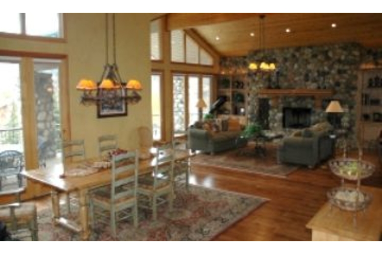 Offering commanding mountain and ski run views, this retreat features five bedrooms and six and a half bathrooms and sleeps up to thirteen people. This home offers Old World Rustic furnishings and design, and is beautiful inside and out.
