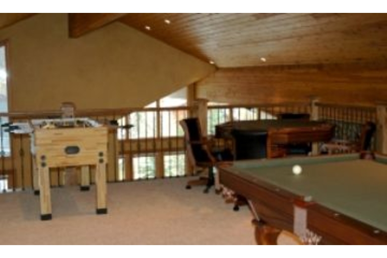 The great room offers a comfortable living area with a large stone fireplace and an inviting entertainment area with a leather sofa sectional and a flat screen TV. The dining table seats twelve and there is additional seating at the bar for five. The kitchen is equipped with WOLF appliances. Enjoy the game room featuring a pool table, foosball table, and game table set. There is a sixty inch home theatre located on the lower level. The master suite offers a king size bed, TV, cozy sitting area, and bathroom with jetted tub and dual sinks. This home has a water softener and a central humidifier.Surrounding Description