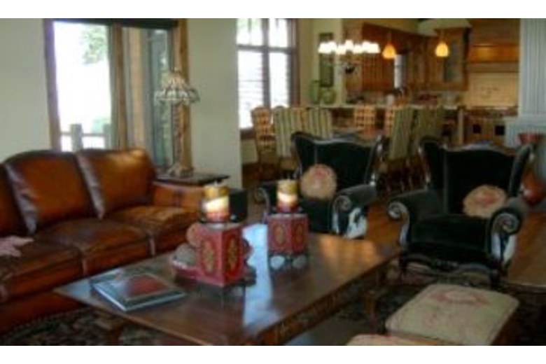 Escape to the Rocky Mountains and stay in this lovely five bedroom, five bathroom home with a gorgeous interior. The living room, dining room, and fully equipped kitchen all have great detail, vaulted ceilings, and upscale decor. Enjoy family gatherings or corporate events with plenty of space and comfort. The bedrooms and bathrooms have high quality furnishings, detail, and are very spacious. The gourmet kitchen has stainless steel appliances, granite countertops, and much more. The dining area has a beautiful square table with seating for eight.Surrounding Description