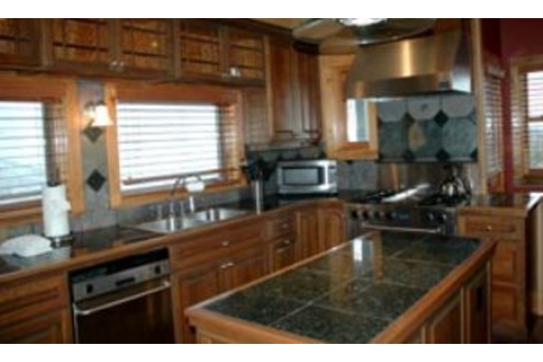 This beautifully designed five bedroom, plus a den, and five bathrooms offers guests a gourmet kitchen, granite and slate throughout the kitchen and bathrooms, and a private hot tub. This is a perfect vacation home with plenty of room and a gorgeous interior with custom designed decor throughout. Relax in the cozy living room or make a delicious hot meal in the kitchen. Additional amenities include DSL Internet access, pool table, workout room, and 3 DVD players with televisions.Surrounding Description