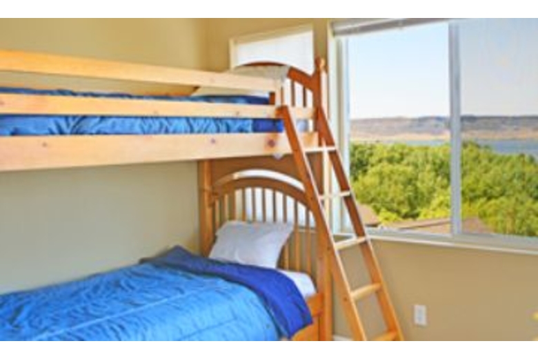 This two level unit features five bedrooms and two bathrooms. Four of the bedrooms feature queen sized beds and the fifth bedroom has a twin bunk bed, perfect for the kids. The living room is comfortable and features an amazing view of the lake. The living room has a wood burning fireplace, sofa sleeper, and TV. The full sized kitchen is equipped with all necessary appliances and cookware to prepare a homemade meal to be enjoyed from the comfort of this unit. There is a dining table and a breakfast bar. For your convenience, this unit is furnished with a washer and dryer. More amenities include cable TV and a gas barbecue grill outside on the deck.Surrounding Description