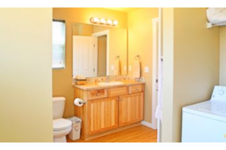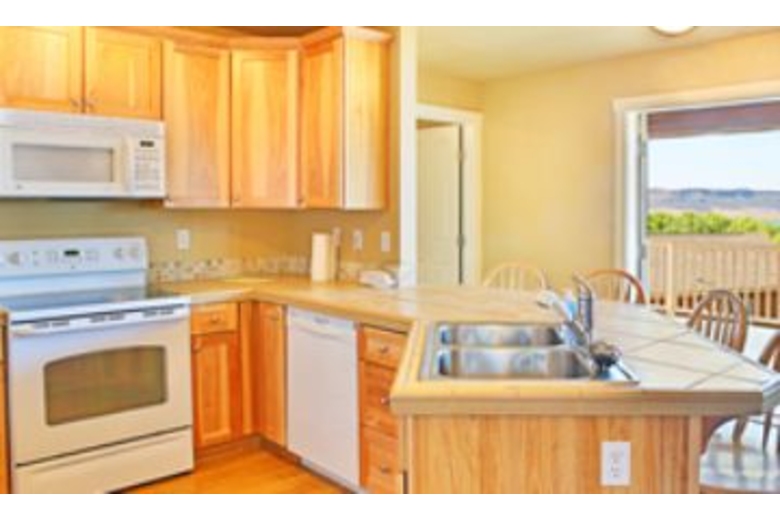 This home has five bedrooms and two bathrooms. Four of the bedrooms are on the top level and three of them have access to the upper decks. Four bedrooms have queen sized beds and one has a twin bunk bed, perfect for the kids. The living room has a queen sized sofa sleeper providing extra sleeping space. The kitchen is fully equipped containing all necessary appliances, dishes, and cookware to prepare a fabulous homemade meal. For dining, a dining table seats four, countertop seating, or dine outside on the deck and enjoy the amazing view. The deck features a gas barbecue grill. This home is conveniently equipped with a washer and dryer.Surrounding Description