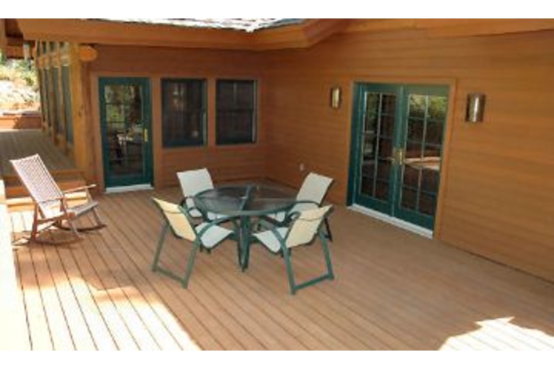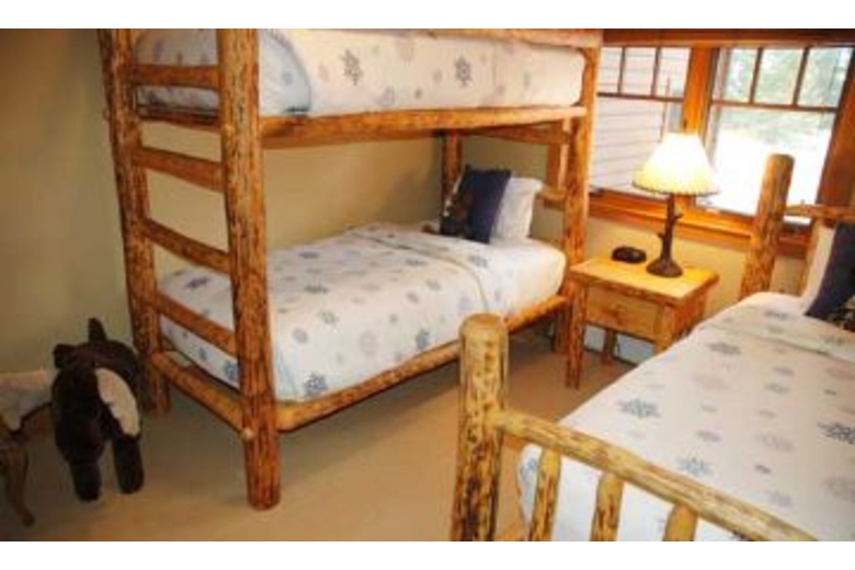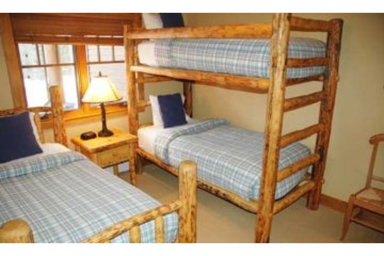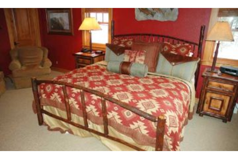 Relax in this wonderful mountain vacation home. The living area is comfortably furnished and offers a large rock fireplace to warm up your toes on a cold winter day. The kitchen is fully equipped and provides two ovens and bar seating. The dining area features a unique table near the fireplace.To comfortably sleep twelve guests, this home features five comfortable bedrooms. The first bedroom features a beautiful red and gold Native American print king bed. The second bedroom features a king bed as well that’s perfect for any cowboy. The third bedroom features two twin beds for a cozy night’s sleep. Finally, the fourth and fifth bedrooms feature a twin bed and a set of twin bunks.Surrounding Description