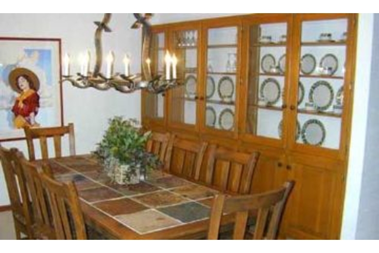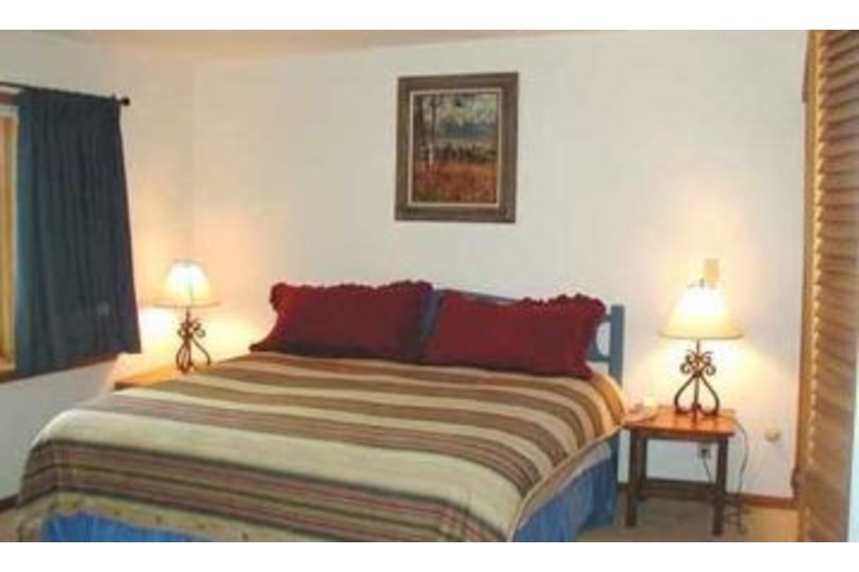 This four-bedroom house in Teton Village has a unique floor plan that revolves around a massive stone fireplace. In the entryway, there is a baby grand piano, and to the right there is the living room with a three-sided fireplace. 4 bedrooms, 3.5 bathrooms. Directly to the right of the entryway there is a half-bath & ski storage room with its own outside door. Continuing past the ski-room, there is a complete kitchen which has a charcoal grill built into the stone structure of the fireplace. There is also a deck, which leads off of the kitchen. Completing the area around the fireplace is the dining room, which seats 8. Downstairs there is a family room with a large screen TV, VCR, stereo and woodstove. Directly off of the family room, there is the hot tub room with wooded views; an ideal relaxation spot after an active day in the valley. Off of the family room, there are two of the three bedrooms and a full bath, which can be closed off to allow some extra privacy. The first bedroom has a king bed and the second has two twins. On the opposite side of the family room is the third bedroom, which has two twins, an ensuite bathroom and walk-in closet. The fourth bedroom is off the piano room and has a queen size bed and attached bath.Surrounding Description