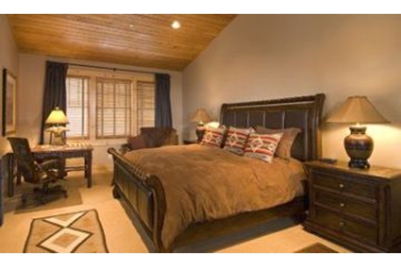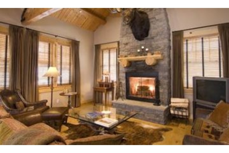Spacious great room with beautiful hardwood floors, large stone fireplace and log trussed cathedral ceiling. Living room is equipped with TV, VCR, DVD and stereo system, some bedrooms have TVs as well. Elegant kitchen with granite or granite tiled counters, custom pine cabinetry, high end appliances and breakfast bar. Luxurious master suite with a king bed, walk-in closet and beautifully tiled bathroom including separate, oversized tub and walk-in shower. Private deck off living area with grill and porch furniture.Surrounding Description